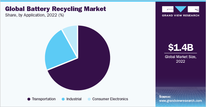 b。交通部门领导全球电池回收市场,占收入的份额比2021年的64.2%。